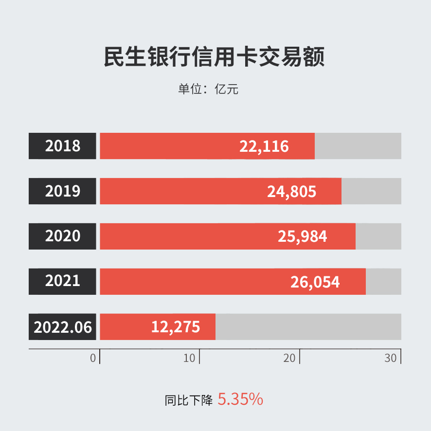 截至2022年6月末,民生银行信用卡贷款余额4,656.05亿元,较上年末下降1.37%。