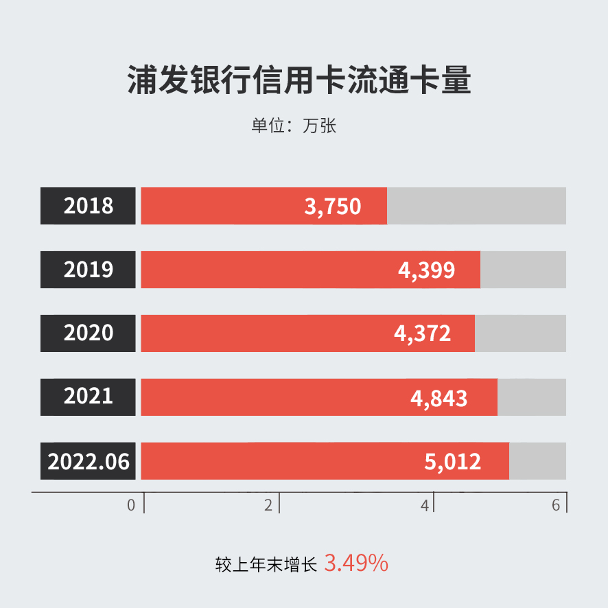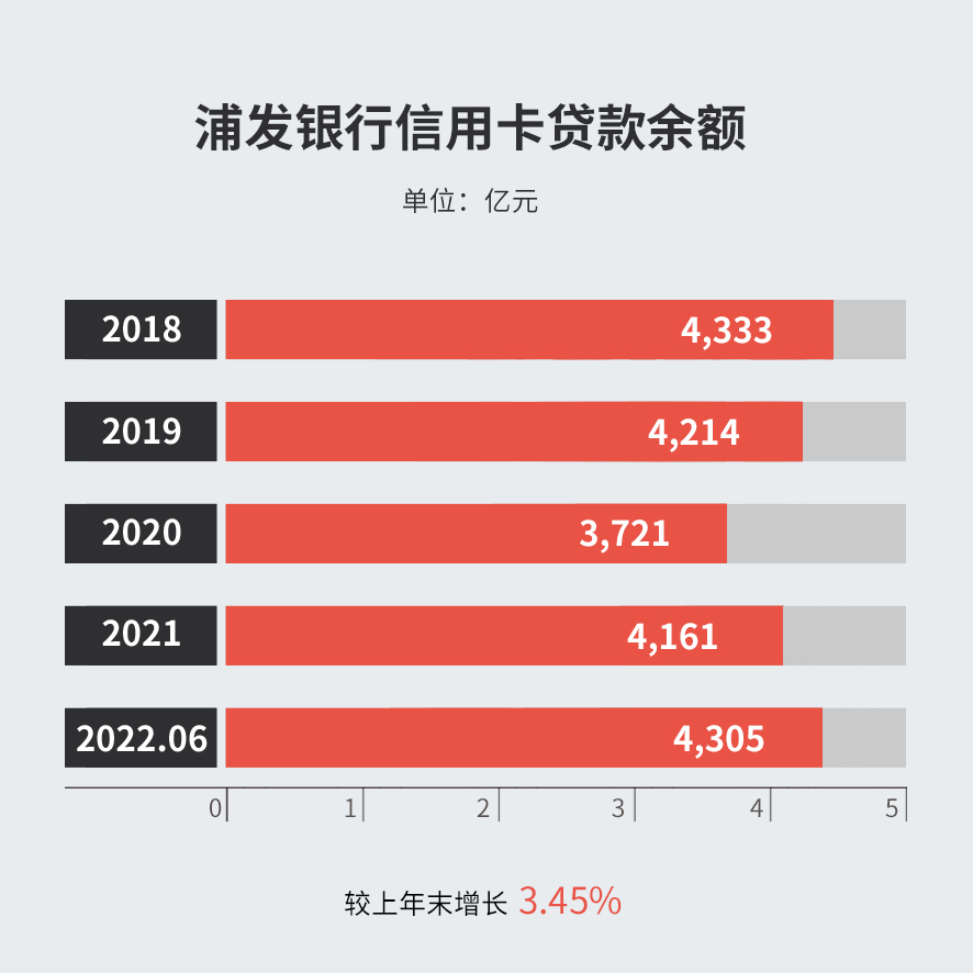 截至2022年6月末,浦发信用卡信贷余额4,304.95亿元,较上年末上升3.45%;