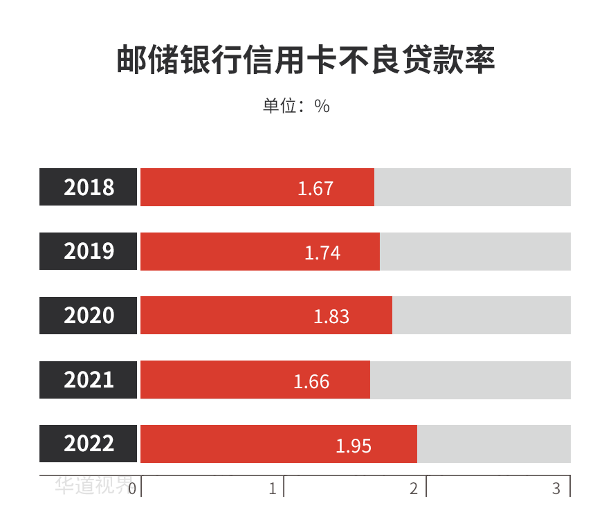 截至报告期末,邮储银行信用卡不良率为1.95%;