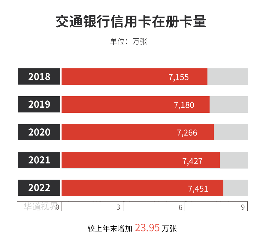截至报告期末,交通银行信用卡在册卡量为7,450.83万张,较上年末增加23.95万张;