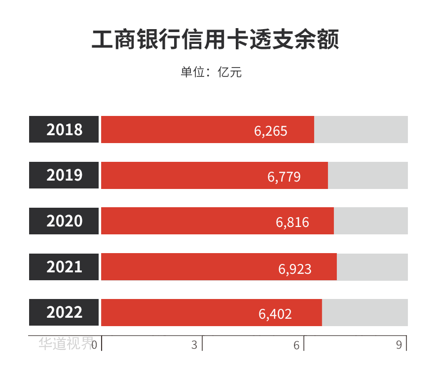 截至报告期末,工商银行信用卡透支余额 6,401.52 亿元;
