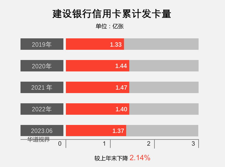 截止2023年6月末,建设银行信用卡累计发卡1.37亿张, 信用卡客户1.06亿户;