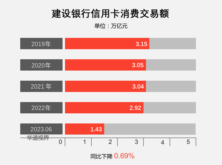 2023年上半年,建设银行信用卡消费交易额1.43万亿元;