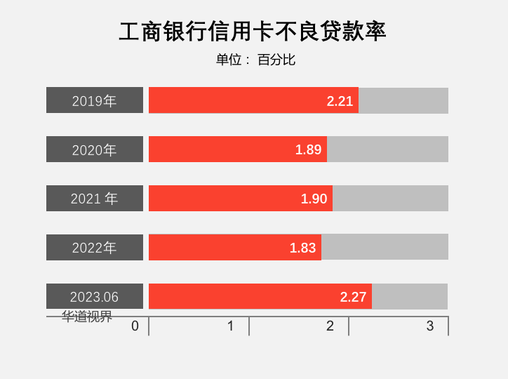 截至2023年6月末,工商银行信用卡不良贷款 147.61亿元,信用卡不良贷款率 2.27%。