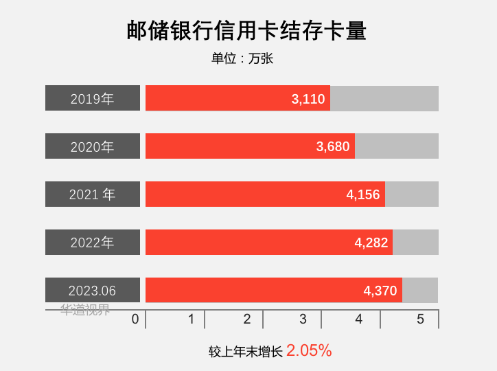 截至2023年6月末,结存卡量达到4,369.98万 张,较上年末增长2.05% ,新增发卡412.88万张;