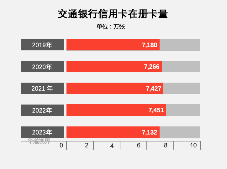 截至2023年末,交通银行信用卡在册卡量 7,132.42 万张;