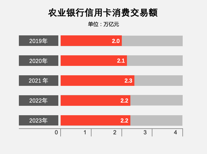 2023年,农业银行实现信用卡消费额 22,010.55 亿元;