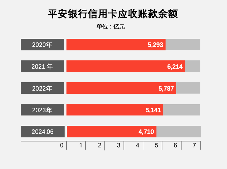 截至2024年6月末,平安银行信用卡应收账款余额4,709.99 亿元,较上年末下降 8.4%;