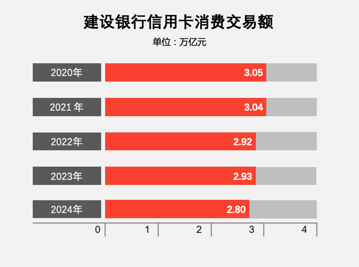 2024年,建设银行全年实现信用卡总消费交易额2.80万亿元;