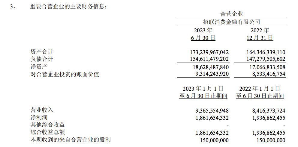 截止2023年6月30日,招联消费金融资产合计1732.39亿,较上年末1643.46亿增长5.41%;负债合计1546.11亿;净资产186.28亿元,较上年末170.67亿增长9.14%。