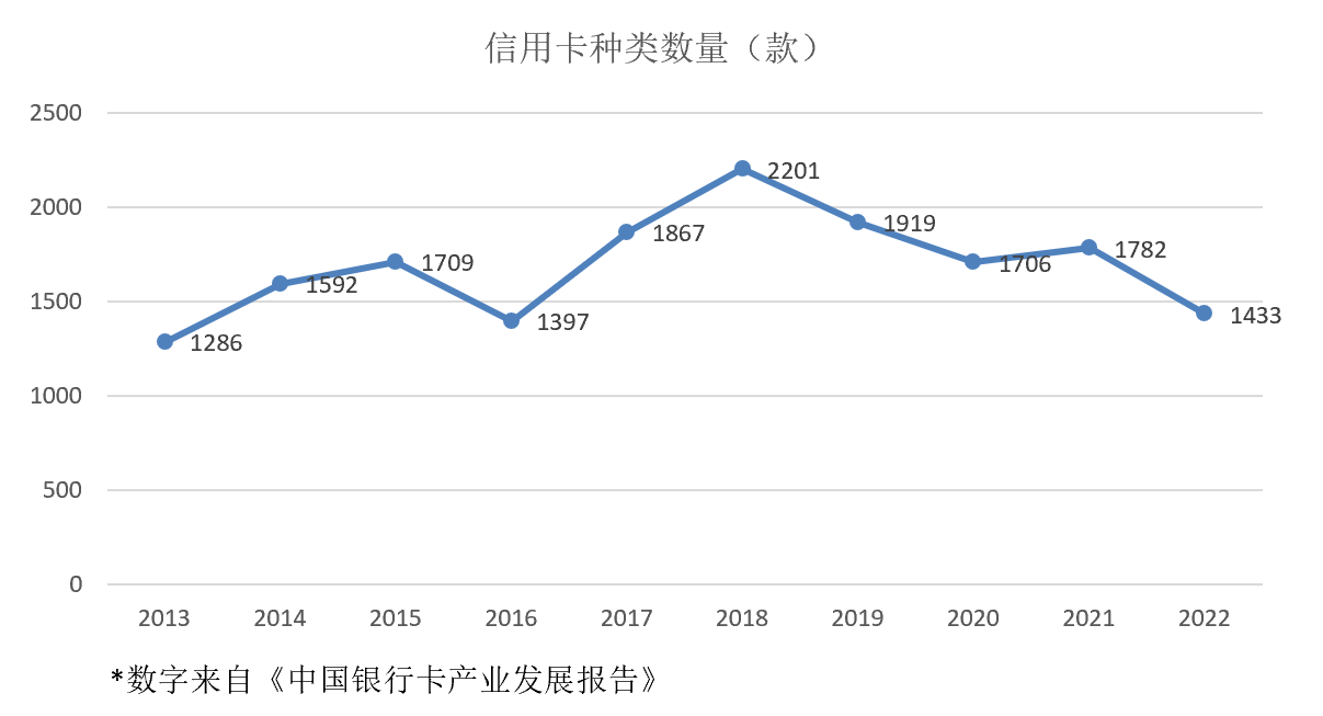 信用卡市场经过二十多年高速发展,产品主题也是丰富多彩,据《中国银行卡产业发展报告2023》显示,2022年信用卡总计发行1430多款,品种涉及了航空、商旅、购物、汽车、文化、体育、生活、娱乐等几十大类品种,满足了持卡人多样化消费需求的提升。