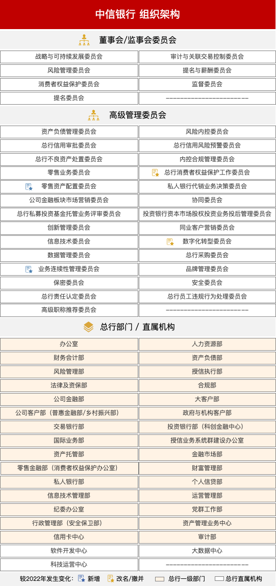 根据2023年年报摘录,中信银行现组织架构如下。
