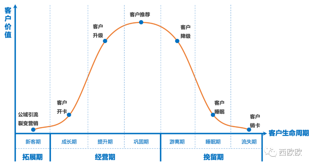 具体来说,银行客户生命周期的“大逻辑”可以将客户分为拓展期、经营期和挽留期三个阶段(如下图):