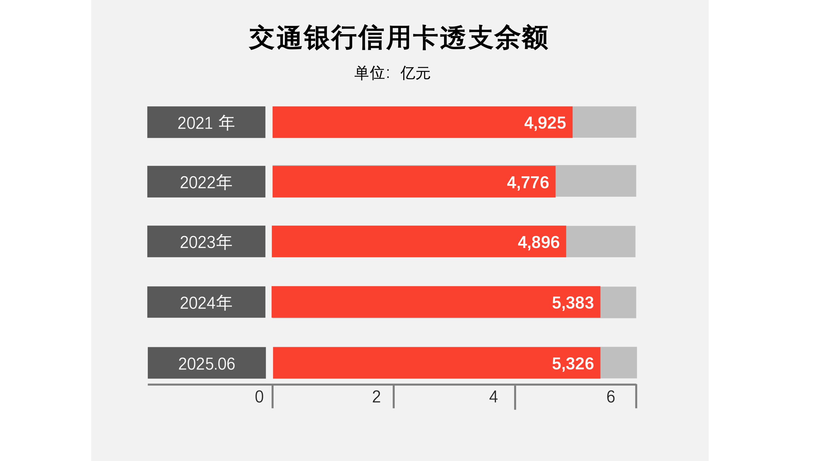 截至报告期末,境内行信用卡透支余额 5,325.82 亿元;