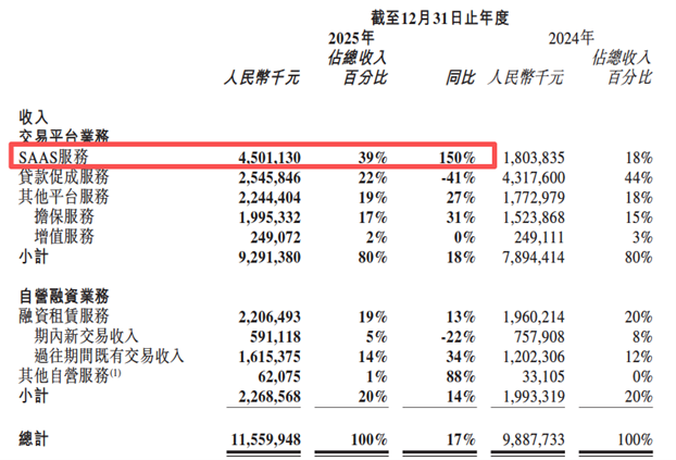 交易平台业务包括SaaS服务、贷款促成服务及其他平台服务(担保服务和增值服务),各自呈截然不同的增长曲线。