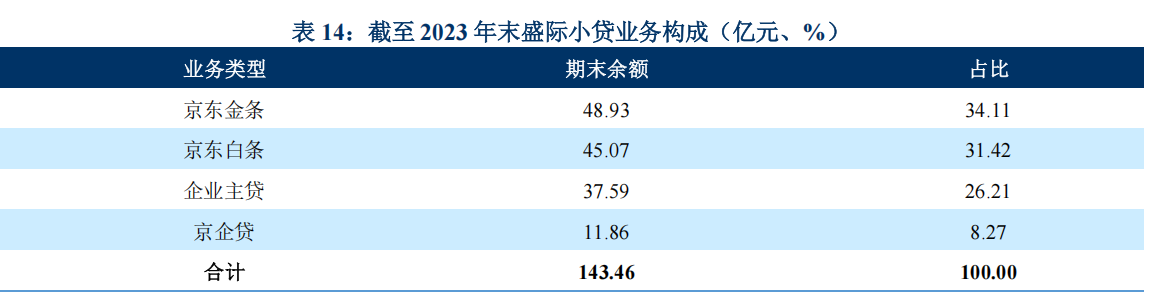 盛际小贷作为京东科技旗下持牌小贷公司,系京东科技旗下京东金融业务板块的重要主体之一。目前盛际小贷的主要业务品种为白条、金条、企业主贷和京企贷。