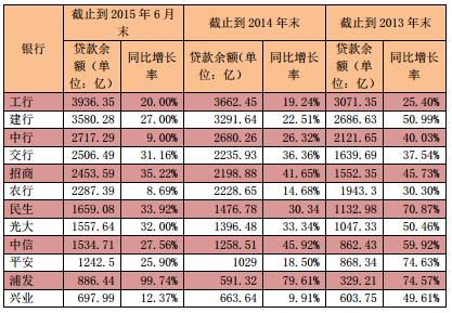 数据来源:各上市银行2015年年中报、公开媒体