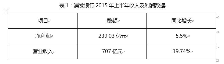 2015年8月20日,浦发银行发布了半年度业绩报告,根据浦发半年度报告显示,该行的具体利润及收入数据如下表所示。